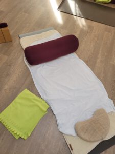Inmiddels volg ik al een geruime tijd wekelijks hatha yogales bij Karin van Yogajuf Roosendaal. De liefste juf die je je maar kunt wensen. Ze heeft oog en aandacht voor iedereen, een kalme stem om te volgen en je ervaart er rust. Rust wat soms zo welkom is. Weg van de dagelijkse prikkels en dingen die je nog ‘moet’ doen.